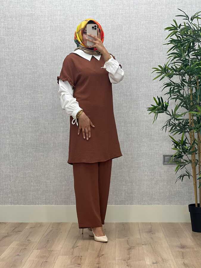 Ayrobin kumaştır38/40/42/44/46/48 bedenRenkler Haki, indigo, siyah , kiremit , lila , lacivert ve gülTunik boy 95 cm pantolon boy 100 cmAğırlık(Kg):0.5